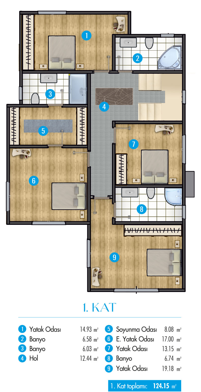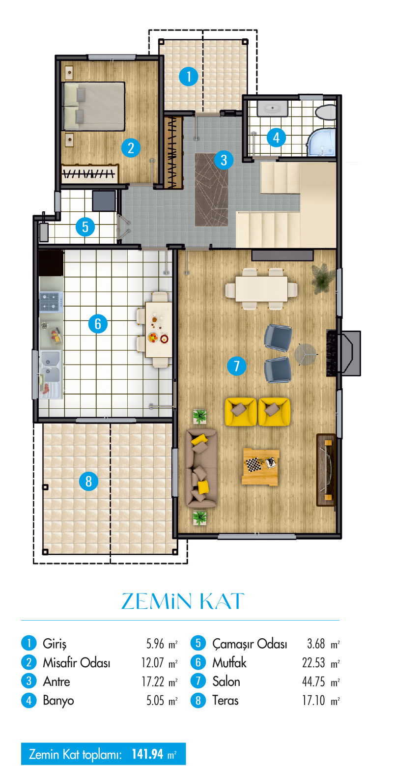 Ergonomisi yüksek, geniş ve ferah yaşam alanlarının olduğu villalarda, konforlu ve sağlık bir yaşam sizleri bekliyor.