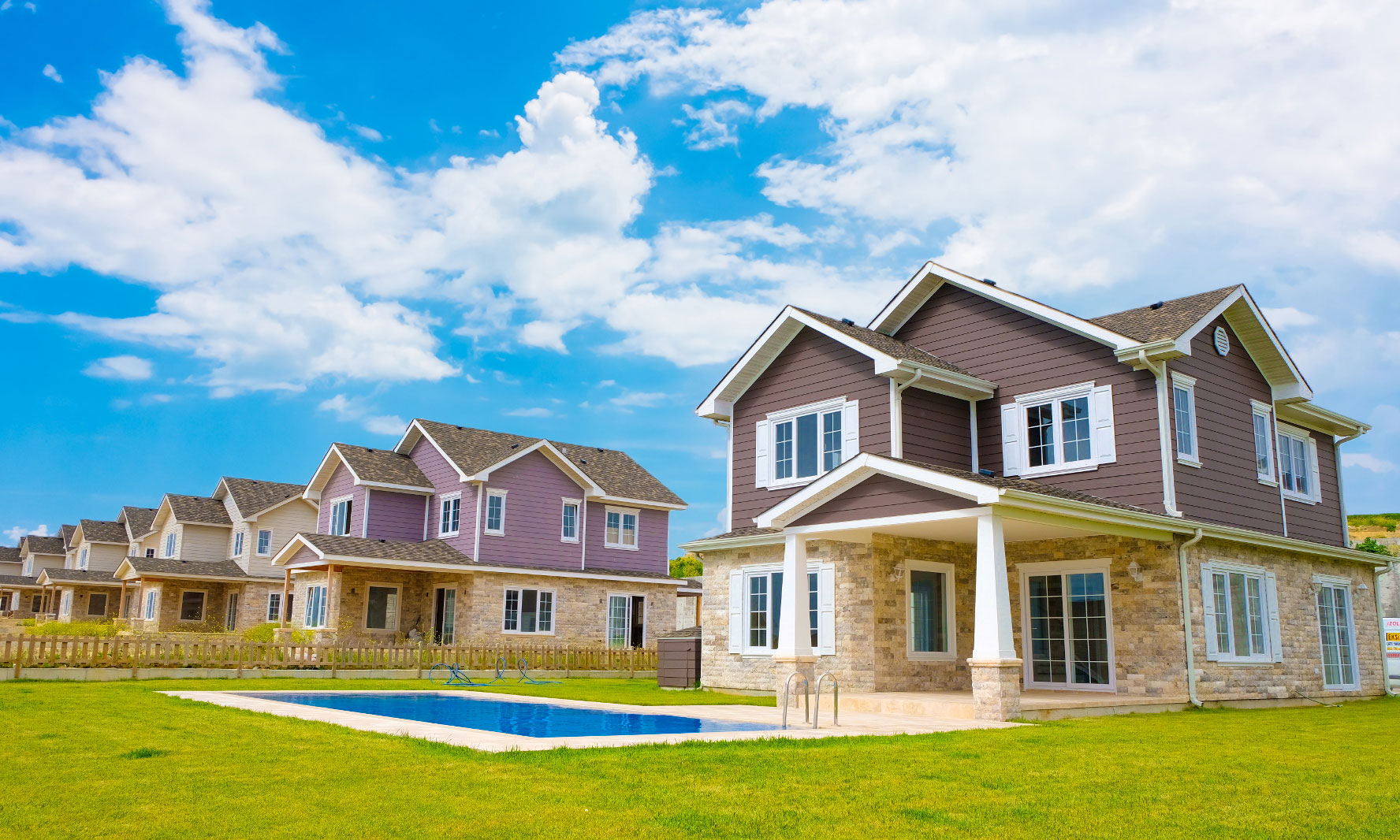 Mutfaklarda tezgahlar çimstone, beyaz eşyalar ve evye dahildir. Bahçe alanlarında çim ve otomatik sulama dahil Havuz opsiyonel olarak sunulmaktadır.